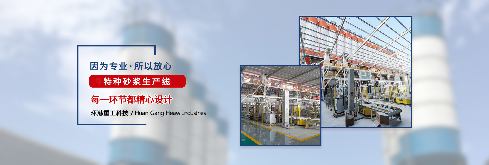 青島環港重工科技有限公司是一家從事干混(粉)砂漿生產線、特種砂漿生產設備、膩子粉生產線、石膏砂漿設備以及砂漿施工設備的設計開發、加工制造及銷售服務一體化的公司。